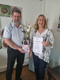 Am 01. September 2024 konnte Elke Neumann aus Flacht auf eine 25jährige Tätigkeit bei der Verbandsgemeinde Aar-Einrich zurückblicken. Sie ist seit 01.09.1999 in der betreuenden Grundschule Niederneisen beschäftigt, die sich in Trägerschaft der Verbandsgemeinde Aar-Einrich befindet. Mit ihren Kolleginnen betreut sie täglich zu den Randzeiten die in der betreuenden Grundschule angemeldeten Kinder. Dabei wird im Betreuungsraum gebastelt oder gespielt und bei schönem Wetter können die Kinder aus vielen tollen Spielgeräten wählen oder sich auf dem Pausenhof sportlich betätigen. Die Schulleitung ist stolz auf das professionell arbeitende Betreuerteam, das sich liebevoll um die kleinen und großen Belange der Kinder kümmert und ehrenamtlich gemeinsam mit dem Kollegium alle Fortbildungen der Schule besucht.