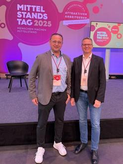 Christopher Kahl (Leiter Entwicklungsagentur Aar-Einrich) und Andreas Minor (stellv. Geschäftsführer WFG Rhein-Lahn) waren gemeinsam auf dem Mittelstandstag 2025 in Mainz.