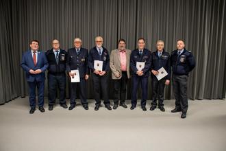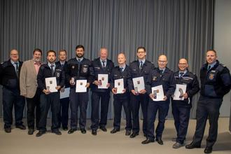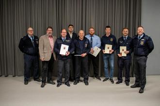 Das bronzene Feuerwehrehrenzeichen für 15jährige aktive Tätigkeit erhielten Kevin Knorr (FFW Burgschwalbach), Sebastian Pfeifer (FFW Ergeshausen), Manuel Johannes Matz (FFW Hahnstätten), Marc Stotz (FFW Lohrheim), Luca Jerome Heuser (FFW Niederneisen) sowie Holger Beck (FFW Rettert).