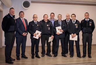 Mit dem silbernen Feuerwehrehrenzeichen für 25jährige aktive Tätigkeit wurden Alexander Weis (FFW Allendorf), Oliver Diefenbach (FFW Berndroth), Hans-Jürgen Vorpagel und Carsten Holger Rübsamen (FFW Katzenelnbogen), Oliver Felzer und Mike Fritz Kurt Gross (FFW Netzbach), Stefan Meyer (FFW Mittelfischbach) sowie Jürgen Johannes Striegl (FFW Niederneisen) ausgezeichnet.