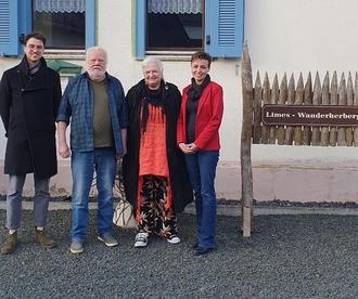 Limes-Wanderherberge Hunzel: Niklas Wenselowski (OBS), Otto Wolkersdörfer und Ellen Waldheim (Gastgeber) und Rita Rehbein (VG Nastätten - Tourismus)