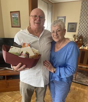 Für die Stadt Lahnstein und den Rhein-Lahn-Kreis überbrachte Beigeordneter Manfred Radermacher die Grüße und Glückwünsche von Oberbürgermeister Lennart Siefert sowie Landrat Jörg Denninghoff und überreichte seitens der Stadt einen Präsentkorb mit Produkten aus dem Lahnsteiner Eine-Welt-Laden.
