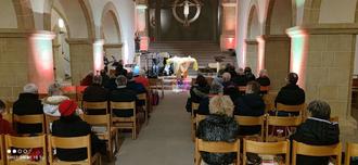 Am Abend des 14. Februar folgten zahlreiche Einzelpersonen und Paare der Einladung der Pfarrei St. Martin und St. Damian Rhein-Lahn und den Kolpingfamilien im Bezirk Rhein-Lahn in die festlich illuminierte Johanniskirche, um gemeinsam einen besonderen Valentinstagsgottesdienst zu feiern. W. Krebs verstand es wieder einmal mehr, die Kirche in ein besonderes Licht zu hüllen. Unter dem Motto „Der Funke springt über“ wurde die Liebe in all ihren Facetten in den Mittelpunkt gestellt. Der stimmungsvolle Gottesdienst bot Raum für Besinnung, Dankbarkeit und neue Impulse für Beziehungen, aber auch Einzelpersonen oder Alleinstehende fanden Raum und Möglichkeiten. Fast alle Gottesdienstbesucher*innen nahmen die Gelegenheit wahr, sich persönlich segnen zu lassen - ein bewegender Moment, der von einer warmherzigen Atmosphäre geprägt war. Musikalisch begleitet wurde der Gottesdienst von der Musikgruppe Spirit, die mit ihren einfühlsamen und kraftvollen Liedern für eine besonders emotionale Stimmung sorgte. Die gelungene Mischung aus Nachdenklichkeit und Freude machte diesen Gottesdienst für viele Besucher*innen zu einem besonderen Erlebnis.