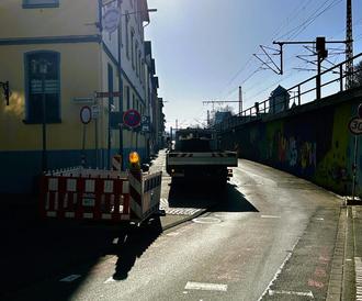 Wegen eines Wasserrohrbruchs ist die Bürgermeister-Müller-Straße gesperrt. (Foto: Eva Dreiser / Stadtverwaltung Lahnstein)