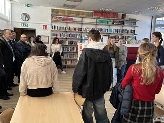 Schülerinnern und Schüler führen die Gäste durch die Bibliothek (Foto: Johqanes-Gymnasium)