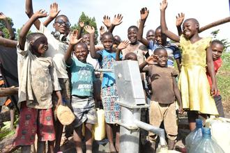 Die Kinder des Dorfes Kobusinge freuen sich über den Brunnen. (Foto: Kobusinge)