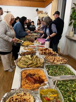 Da haben doch Einige wieder Etwas verpasst. Die Initiative hatte ja knapp 100 Anmeldungen zu dem Ramadan-Cafe, nicht alle Angemeldeten konnten kommen, aber mit den ehrenamtlich Engagierten waren es dann doch etwa 110 Menschen, die sich zum täglichen Fastenbrechen im Cafe International getroffen hatten. Eine wunderbare Stimmung, heiter und fast ausgelassen bei leckeren Essensangeboten durch verschiedene Länder. So hatte sich das Cafe-Team das vorgestellt. Es war eine große Ehre, auch in diesem Jahr zusammen mit den Muslimen dieses Fastenbrechen zu erleben.