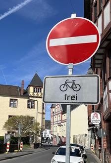 Autofahrer aufgepasst! Die Einbahnstraßen Hochstraße und Westallee können von Fahrradfahren in beide Richtungen befahren werden. (Foto: Mira Bind / Stadtverwaltung Lahnstein)