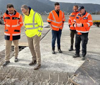 Der Landesbetrieb Mobilität Diez lud zur Baustellenbegehung der Lahnbrücke B24 ein. Mitarbeiter des LBM informierten Oberbürgermeister Lennart Siefert und Mitarbeiter der Stadtverwaltung Lahnstein über den aktuellen Baufortschritt.