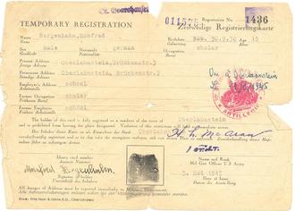 Mit solch einer Registrierungskarte, hier ausgestellt am 3. Mai 1945, wurden alle Einwohner von der US-Besatzungsbehörde erfasst (Sammlung Stadtarchiv Lahnstein zur Verfügung gestellt von Manfred Hergenhahn)