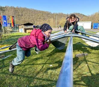 Auf dem Außengelände des THW gibt es jede Menge Möglichkeiten zum Austoben und Klettern. (Fotos: Mira Bind / Stadtverwaltung Lahnstein)