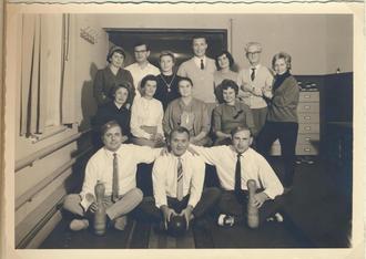 Die Kegler zum 10-jährigen Bestehen 1964. Viele älteren Mitbürger werden sicherlich ihre ehemaligen Lehrer wiedererkennen.