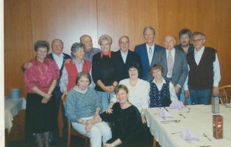 Von der Ursprungsbesetzung leben außer Werner Valler nur noch Frau Erika Gesthuisen. Das jüngere Foto stammt von der 40-Jahrfeier 1994 - darauf sind auch die zwei Gästekegler Jochen Börner und Gabi Schenk zu sehen.