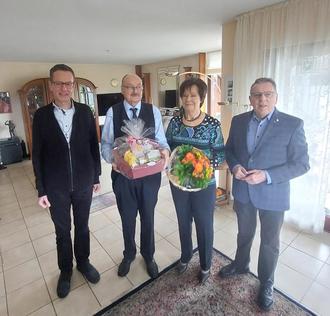 Der Bürgermeister der Stadt Lahnstein, Adalbert Dornbusch, überbrachte dem Jubiläumshochzeitspaar die Glück- und Segenswünsche des Oberbürgermeisters Lennart Siefert, des Landrats Jörg Denninghoff und der Ministerpräsidentin Malu Dreyer. Für die Stadt Lahnstein überreichte ihnen Bürgermeister Dornbusch einen liebevoll mit fair gehandelten Produkten zusammengestellten Präsentkorb und ein Geldpräsent des Rhein-Lahn-Kreises.