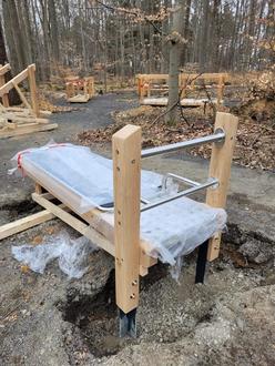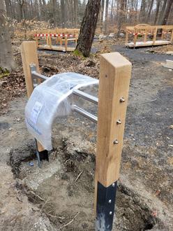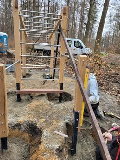 Die letzten Handgriffe werden getan, um den Fitness-Parcours im Kur- und Heilwald Lahsntein fertigzustellen. (Fotos: Astrid Haderlein / Stadtverwaltung Lahnstein)