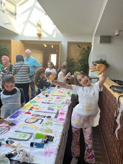 Als die Organisatorinnen die Vorbereitungen abgeschlossen hatten, gesellten sich doch viele Kinder dazu, die ihre Ideen und ihre Kreativität hier ausleben konnten. So ist eine schöne Gemeinschaftsaktion entstanden. Stolz wurden die einzelnen Hände auch den begleitenden Familienangehörigen gezeigt.