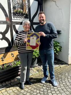 Seit diesem Jahr hat sie sich in den Ruhestand verabschiedet. Eine Veranstaltung ohne Edel an den Toiletten, daran wird man sich erst noch gewöhnen müssen. Als Dank und Anerkennung für ihre jahrzehntelange Arbeit wurde dieses Lahnsteiner Urgestein nun von Oberbürgermeister Lennart Siefert mit einer Urkunde gewürdigt – bei der natürlich nicht ein Stück von ihrer Geschichte fehlen durfte: ein Teil des ebenfalls legendären Stadthallenteppichs.
