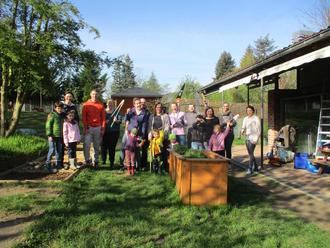 Am 22.04. war es wieder so weit: Viele Eltern und Kinder der Kita bevölkerten das Außengelände mit Schaufeln, Schubkarren, Gartenscheren, Freischneidern, Pinsel und Farbtöpfen, um Unkraut zu jäten, Rückschnitte zu machen, Rindenmulch zu verteilen, Sand zu schaufeln und um die Outdoor-Küche zu streichen.