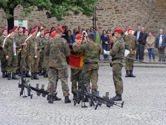 Verhüllung der Truppenfahne (Fotos: Bernd Geil / Stadtverwaltung Lahnstein)