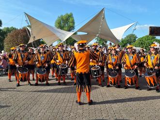 Der Fanfarenzug der Kolpingfamilie Zwiefalten beim Jubiläumsfest. (Foto: Kolpingfamilie)