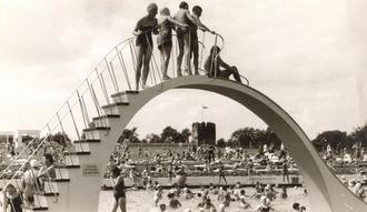 Blick vom Café auf das Freibadgelände (Fotos: Sammlung Stadtarchiv Lahnstein aus damaligem Prospekt)