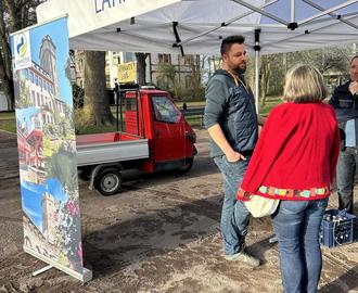 Am 06. Juni steht Oberbürgermeister Lennart Siefert mit seiner Ape in Friedland. Wer ein Anliegen hat, kann einfach vorbeikommen. (Foto: Eva Dreiser / Stadtverwaltung Lahnstein)