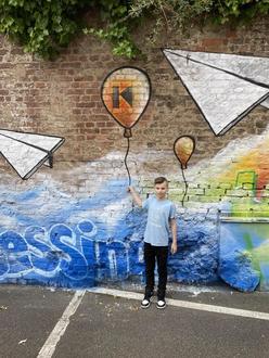 Leon aus der Kolpingfamilie St. Martin beim Graffiti-Workshop. (Fotos: Thomas Schneider)