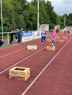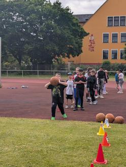 In den Disziplinen Weitsprung, Medizinballstoßen, Sprint mit Hürden und Slalom konnten alle Kinder ihr sportliches Können unter Beweis stellen. Mit viel Einsatz und Begeisterung meisterten die Kinder jede Station – ob bei Sonnenschein oder unter grauen Wolken und selbst das ein oder andere Regetröpfchen konnte den sportlichen Eifer nicht bremsen.