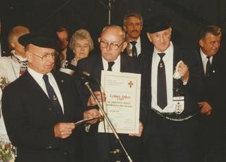 1989 erhielt der Schifferverein den Lehner Anker verliehen (links im Bild Toni Hewel, damals 1. Vorsitzender) (Foto: Sammlung Stadtarchiv Lahnstein)