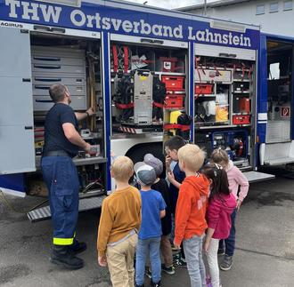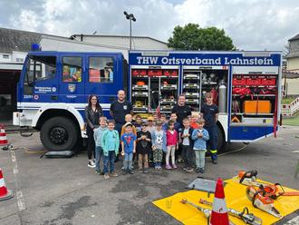Im Rahmen des Vorschulprogramms besuchte das Technische Hilfswerk Ortsverband Lahnstein die Vorschulkinder der Kita EinSteinchen. Die Kinder lernten an diesem Tag unter anderem, was das THW ist und welche Aufgaben es hat.