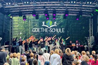 Auch eigene Musikproduktionen feierten Premiere – ein Beleg für die kreative Arbeit, die an der Goethe-Schule tagtäglich geleistet wird. Souverän und charmant führten die beiden Schülersprecher*innen Paulina und Lionel durch das fast einstündige Programm, das vor mehreren hundert Zuschauerinnen und Zuschauern auf der großen Festivalbühne stattfand.
