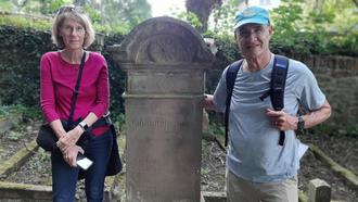 Ron Friedmann mit Frau am Grab seiner Ururgroßmutter Johannette Hirsch