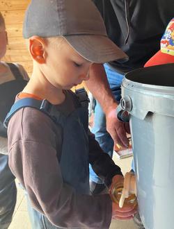 Nach der theoretischen und praktischen Einführung durften die Kinder schließlich selbst aktiv werden - jedes Kind bekam ein Glas und befüllte es mit Honig. Die Begeisterung war groß, als sie ihren eigenen Honig in den Händen hielten. „Das ist der beste Honig, den ich je gegessen habe“, sind sich alle Lahnkobolde einig.