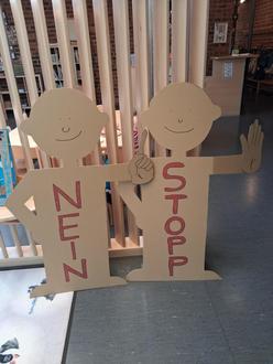 Mit selbstgeschriebenen und gezeichneten Geschichten aus dem Kita-Alltag greifen die päd. Fachkräfte dieses Thema auf und befähigen die Kinder, sich in Notfällen unter Kindern Hilfe zu suchen. Hierbei werden sie von den zwei Freunden „Stopp“ und „Nein“ begleitet. Ein eigens von der Kita dazu geschriebenes und vertontes Lied mit entsprechenden Handbewegungen gibt auch den Jüngsten die Möglichkeit, sich bemerkbar zu machen: