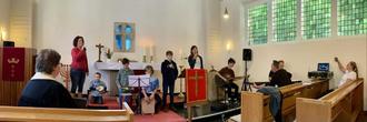 Am vergangenen Pfingstfest feierte die Ev. Gesamtkirchengemeinde Frücht-Friedrichssegen ihren Geburtstag bzw. den Geburtstag von Kirche an sich. Pfarrerin Antje Müller gestaltete den Familiengottesdienst in der Friedenskirche Friedrichssegen zusammen mit den Familien Höfer, Schmitz und Harloff, die abwechselnd mit Organistin Hannelore Syre für die musikalische Begleitung sorgten. Gebete und Lesungstexte waren so formuliert, dass alle Altersgruppen es verstehen konnten.