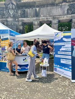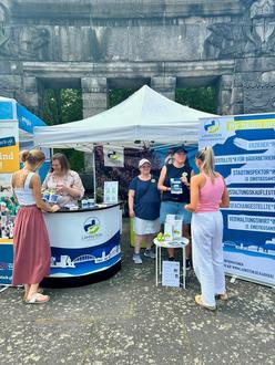 Am Pavillon der Stadtverwaltung informierten sich bei sommerlichen Temperaturen Schülerinnen und Schüler über die Ausbildungsberufe (m/w/d) Erzieher, Fachangestellte für Bäderbetriebe, Stadtinspektoren, Veranstaltungskaufleute, Verwaltungsfachangestellte oder Verwaltungswirt. Für viele war es überraschend zu sehen, wie vielseitig und modern Jobs bei der Stadt sein können.