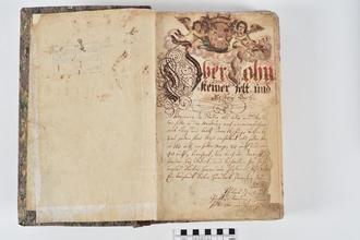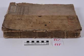 Rücken und vorderer Buchdeckel vor der Restaurierung