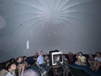 Am Donnerstag, 29. Juni 2023 bekamen die Kinder der Goethe-Schule Besuch von Herrn Völkel und seinem mobilen Planetarium.