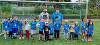 Wichtig hierbei war, dass es um das Miteinander und den Spaß ging, die die Kinder verspüren sollten. Auf das Ergebnis kam es weniger an. Also wurde bei bestem Wetter gespielt, jeder trat gegen jeden an, alle haben ihr Bestes gegeben, kämpften sich ehrgeizig und voller Elan von Runde zu Runde durch und hatten jede Menge Spaß und Freude am Miteinander. Eltern, Großeltern, Geschwisterkinder und Erzieher*innen jubelten beim Kita Fußballturnier ihren kleinen Fußballspielern aufgeregt zu. Gegen 12 Uhr mittags verließ dann jedes Kind glücklich mit einer Medaille um den Hals das Turnier, denn Verlierer gab es keinen.