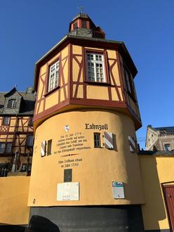 Auch wenn das Gebäude explizit nicht genannt wird, so ist es doch sehr wahrscheinlich, dass es sich um das 1697 erbaute „Wirtshaus an der Lahn“ handelt. Vor dem angrenzenden, 1348 erbauten kurfürstlichen Zollturm lag ein kleiner Hafen, eine Schiffsanlegestelle. Die kurtrierischen Soldaten erhoben hier den Lahnzoll und träumten von der Wirtin im Gasthof nebenan. So soll hier das berühmt-berüchtigte Lied von der „Wirtin von der Lahn“ entstanden sein, von dem heute rund 1.000 Strophen bekannt sind. Folgende nicht ganz jugendfreie Strophe soll Goethe hinzugedichtet haben: „Die Wirtin hatte auch ein Kind. Das hatte einen krummen Pint. Man wollt‘ ihn biegen gerade. Doch als er gerade gerade war, da brach er ab – was schade war.“