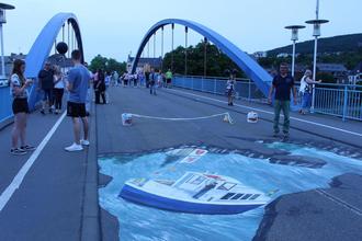 Straßenmalerei mit „Nixe“ auf der gesperrten Rudi-Geil-Brücke