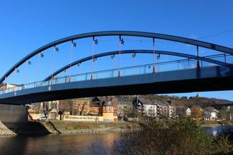 Auf der Rudi-Geil-Brücke ist das Überholen einspuriger Zweiräder durch mehrspurige Kraftfahrzeuge seit Januar untersagt. (Foto: Eva Dreiser / Stadtverwaltung Lahnstein)