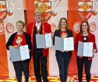Tanja Sonnak, Markus Krapf, Michaela Dasbach und Jasmin Kalb wurden beim Aktivenempfang des CCO mit Ehrenorden des RKK ausgezeichnet. (Fotos: Wolfgang Nagel / CCO)