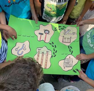 Die Kinder richteten ihre Schlafplätze ein und plötzlich das! Es kam ein Brief von Till dem Wichtel aus dem Kur- und Heilwald. Till benötigte Hilfe, um einen Schatz zu finden und so machten sich die Kinder sowie die Erzieherinnen aufgeregt auf eine gemeinsame Schatzsuche in den Kur- und Heilwald. Im Wald angekommen, warteten knifflige Rätsel und abenteuerliche Aufgaben auf die Truppe. Kein Problem für die Maxikinder der Kita St. Barbara!