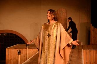 An der mittelalterlichen Johanniskirche zeigt das Lahnsteiner Theater noch an diesem und am nächstem Wochenende die Geschichte von Johanna, die durch eine Verkettung von Zufällen an die Spitze der katholischen Kirche gewählt wird.