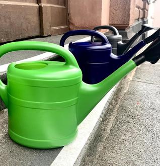 Im Rathaus in der Kirchstraße stehen bunte Gießkannen für die Helferinnen und Helfer bereit.