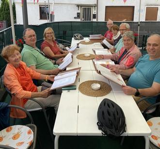 Von hier aus wurde in der Marienstraße die Heimstätte von Stephan Otto angesteuert, wo zum obligatorischen „Absacker“ geladen wurde am „G-8-Rundtisch“ mit beweglichen Teilen. Haselnusslikör und italienischer Kräuterlikör wurden unter anderem gereicht. Die Radtouren werden jeweils dienstags während der Sommerferien um 17,30 Uhr gestartet am Denkmal des „Baareschesser“ auf dem Festplatz in Niederlahnstein an der Lahn. Mitfahren ohne Voranmeldung können auf eigene Gefahr auch interessierte Nichtmitglieder sowie in Lahnstein weilende Urlauber. Am 6. August 2024 geht es nach Bad Ems (Lahnterasse) und am 13. August 2024 nach Osterspai (Rhein-Lounge Zimmermann’s).