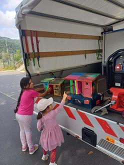 Die Kinder sind schon ganz gespannt, wann sie die ersten Vögel ein- und ausfliegen sehen.