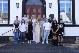 Für die musikalische Gestaltung sorgte „Haus- und Hof-Musikant“, Lehrkraft Thomas Peters, der mit stimmungsvollen Beiträgen auf dem Saxofon zur feierlichen Atmosphäre beitrug. Den Abschluss bildeten Klassenfotos auf dem Schulhof und ein gemeinsames Anstoßen mit Sekt – zusammen mit Eltern, Lehrkräften und Gästen – um den zitierten Meilenstein gebührend zu feiern.