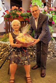 Der Bürgermeister der Stadt Lahnstein, Adalbert Dornbusch, überbrachte der Jubilarin Glück- und Segenswünsche des Oberbürgermeisters Lennart Siefert, des Landrats Jörg Denninghoff und der Ministerpräsidentin Malu Dreyer und gratulierte Anna Breitbach zum 100. Geburtstag. Im Namen der Stadt Lahnstein überreichte ihr Bürgermeister Dornbusch einen liebevoll mit fair gehandelten Produkten zusammengestellten Präsentkorb aus dem Eine-Welt-Laden sowie ein Geldpräsent des Rhein-Lahn-Kreises.